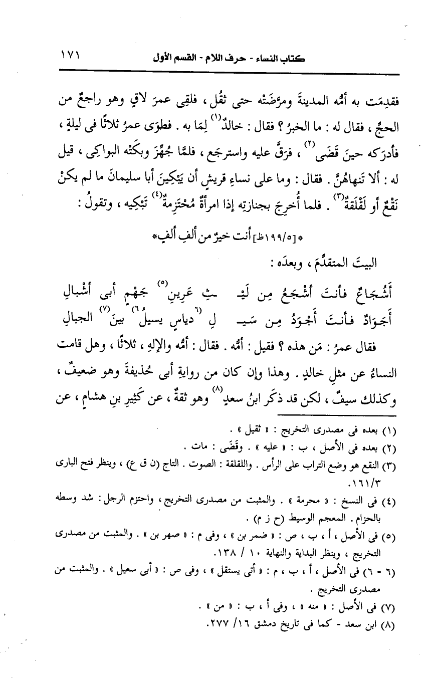 وهذا مسند صحيح وعلق البُخارِيّ قول عمر في النقع واللقلقة في البكاء على خالد لكن لم يسم أمه.