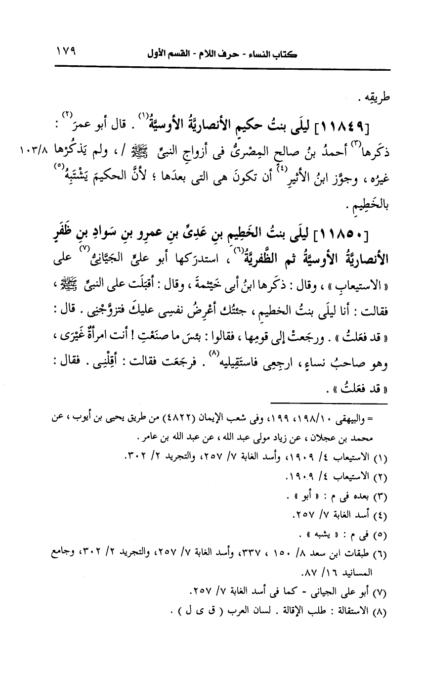 11849- ليلى بنت حكيم، الأَنصارِيّة الأوسية.
