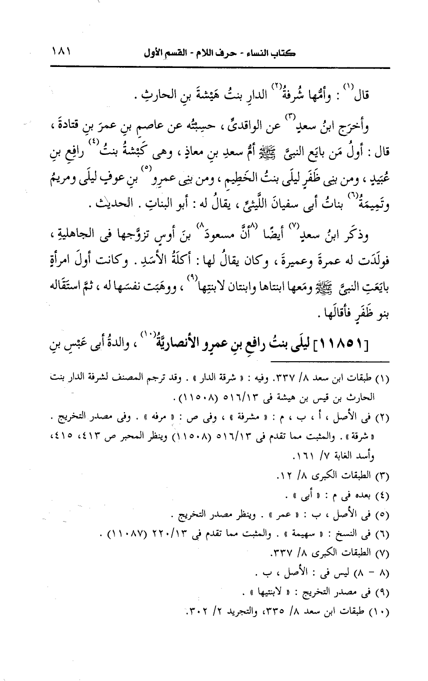 11851- ليلى بنت رافع بن عَمرو، الأَنصارِيّة والدة أبي عبس بن حرب.