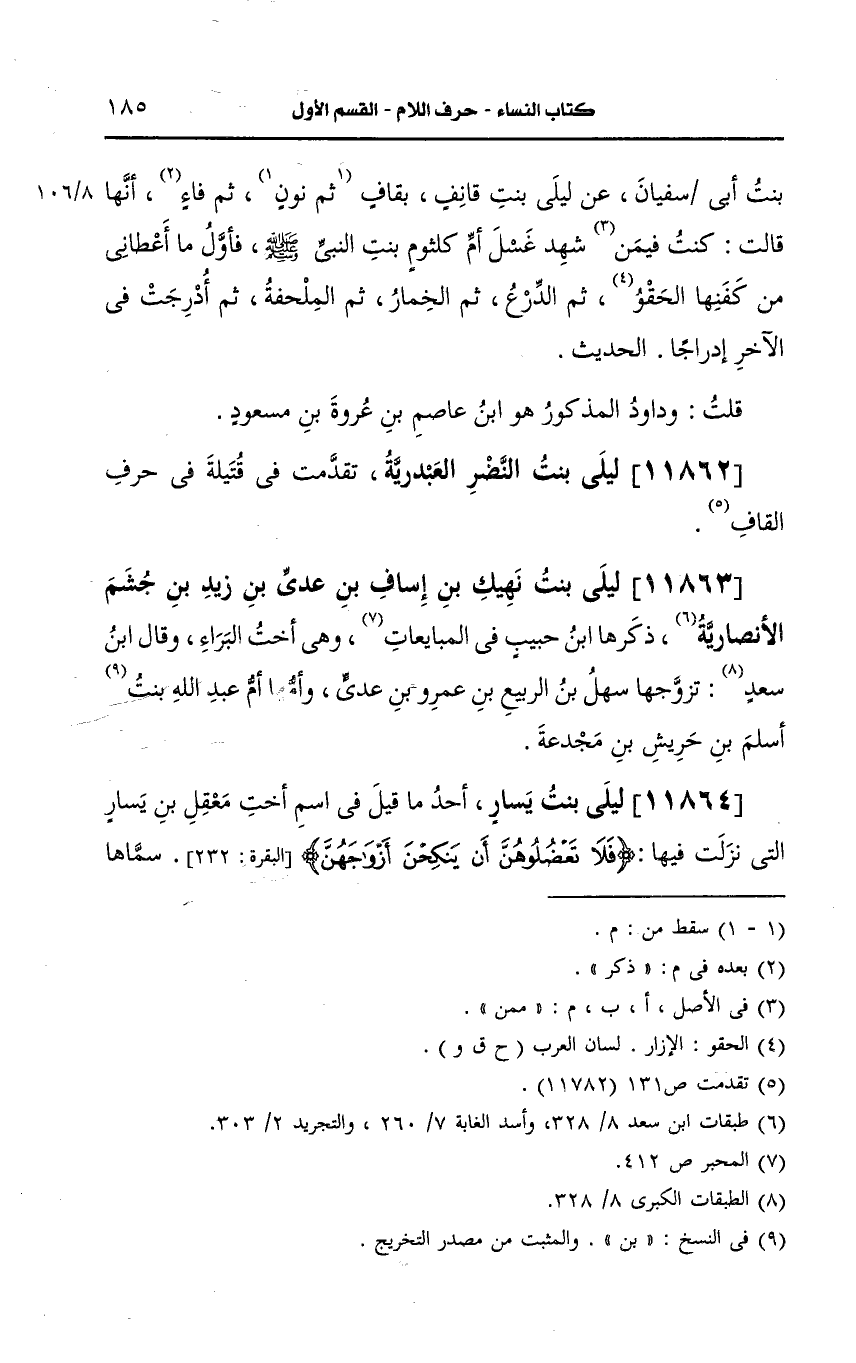 11863- ليلى بنت نهيك بن إساف بن عَدِيّ بن زيد بن جُشَم، الأَنصارِيّة.