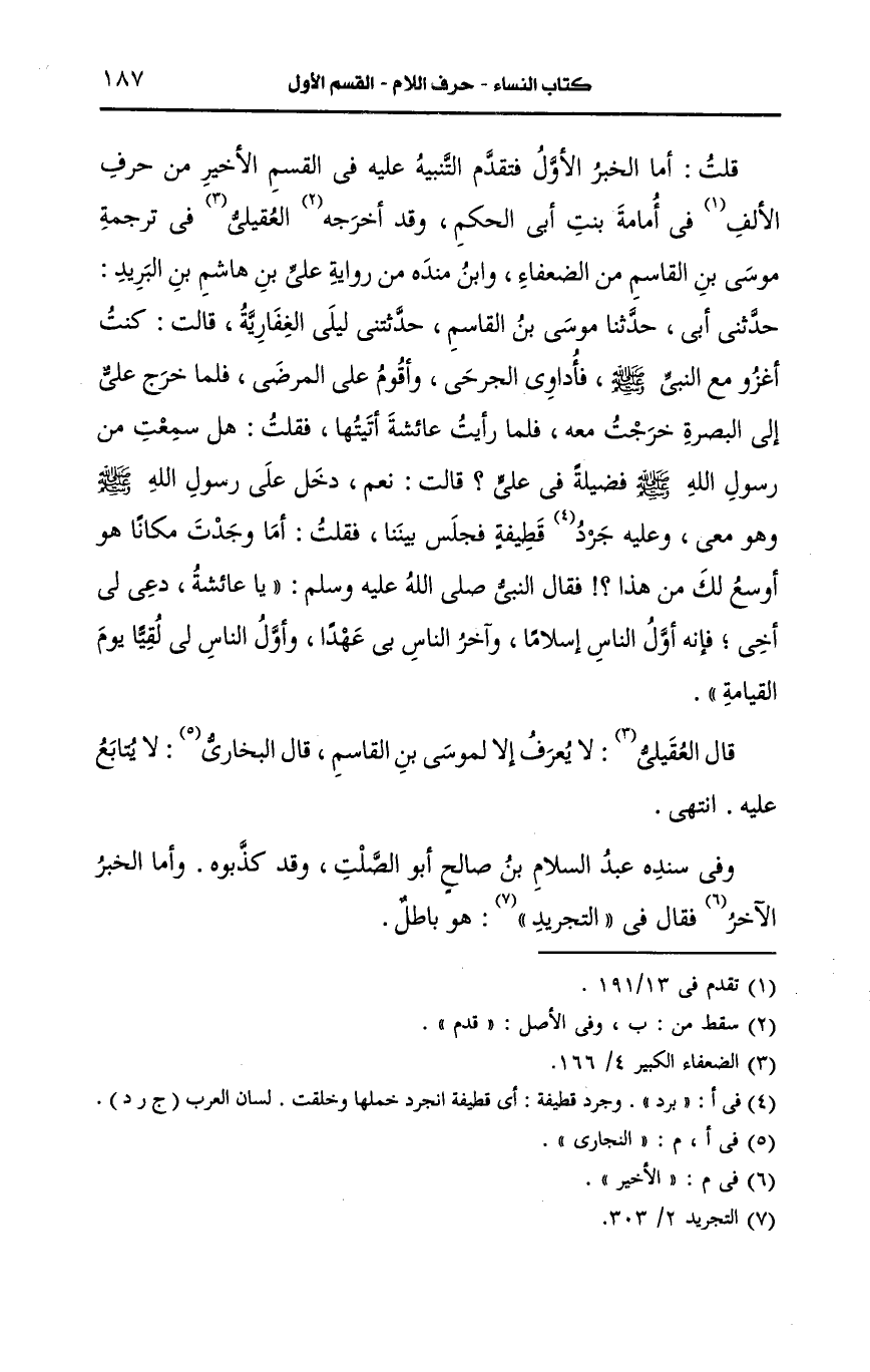 وأما الخبر الأخير فقال في التجريد هو باطل.