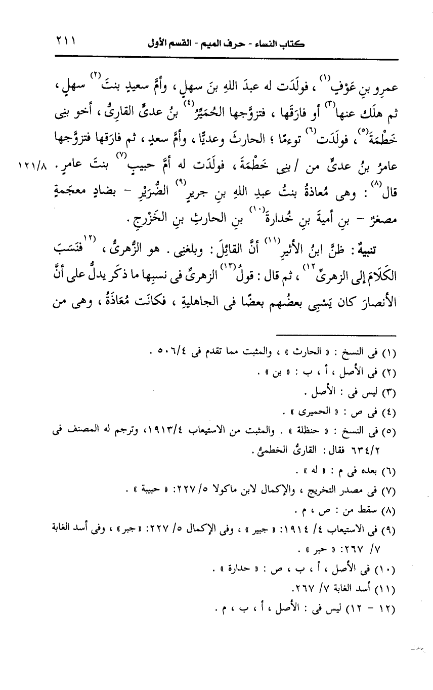 تنبيه ظن ابن الأَثِير أن القائل وبلغني هو الزُّهْرِيّ ثم قال قول الزُّهْرِيّ في نسبها ما ذكر يدل على أن الأنصار كان يسبي بعضهم بضعا في الجاهلية فكانت معاذة وهي من الخزرج أمة لعبد الله بن أبي.