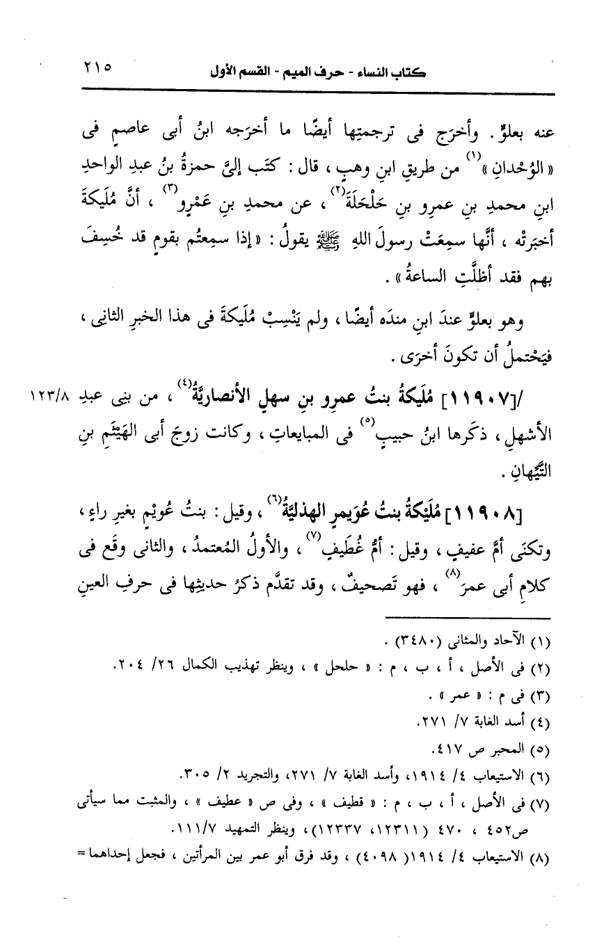 11907- مليكة بنت عَمرو بن سهل، الأَنصارِيّة.