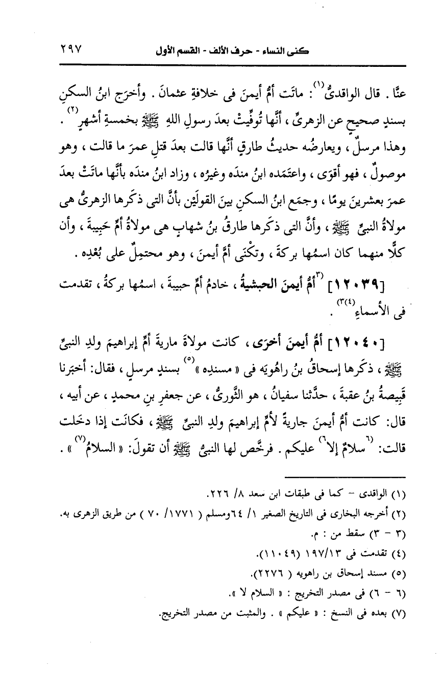 12039- أم أيمن الحبشية خادم أم حبيبة أسمها بركة تقدمت في الأسماء.