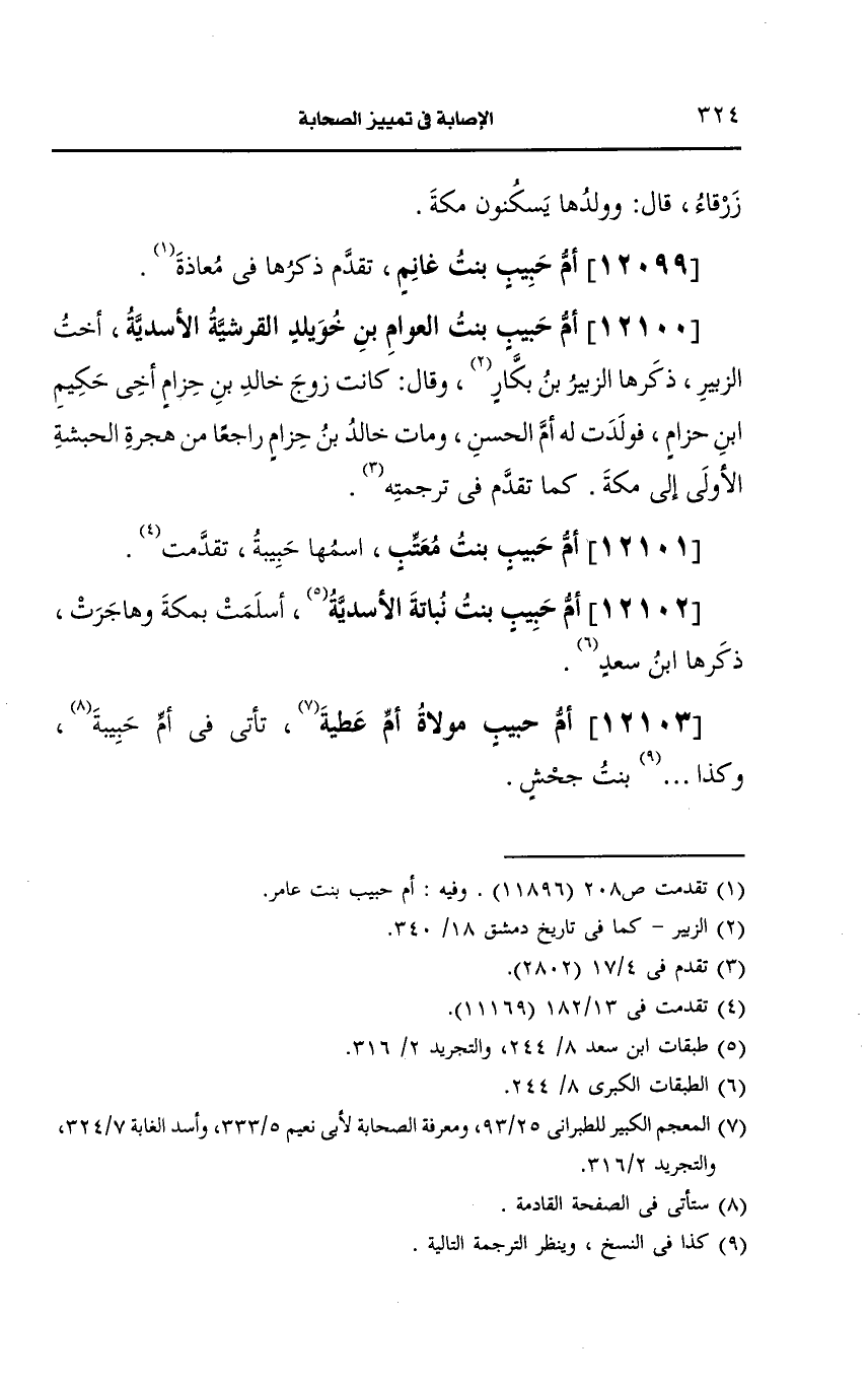 12100- أم حبيب بنت العوام بن خويلد، القُرشِيّة الأسدية.