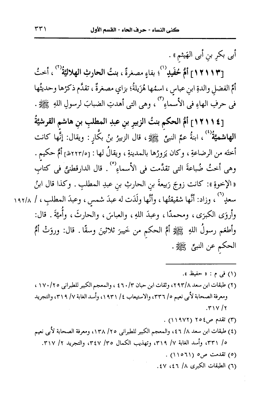 12114- أم الحكم بنت الزبير بن عبد المطلب بن هاشم، القُرشِيّة الهاشمية.