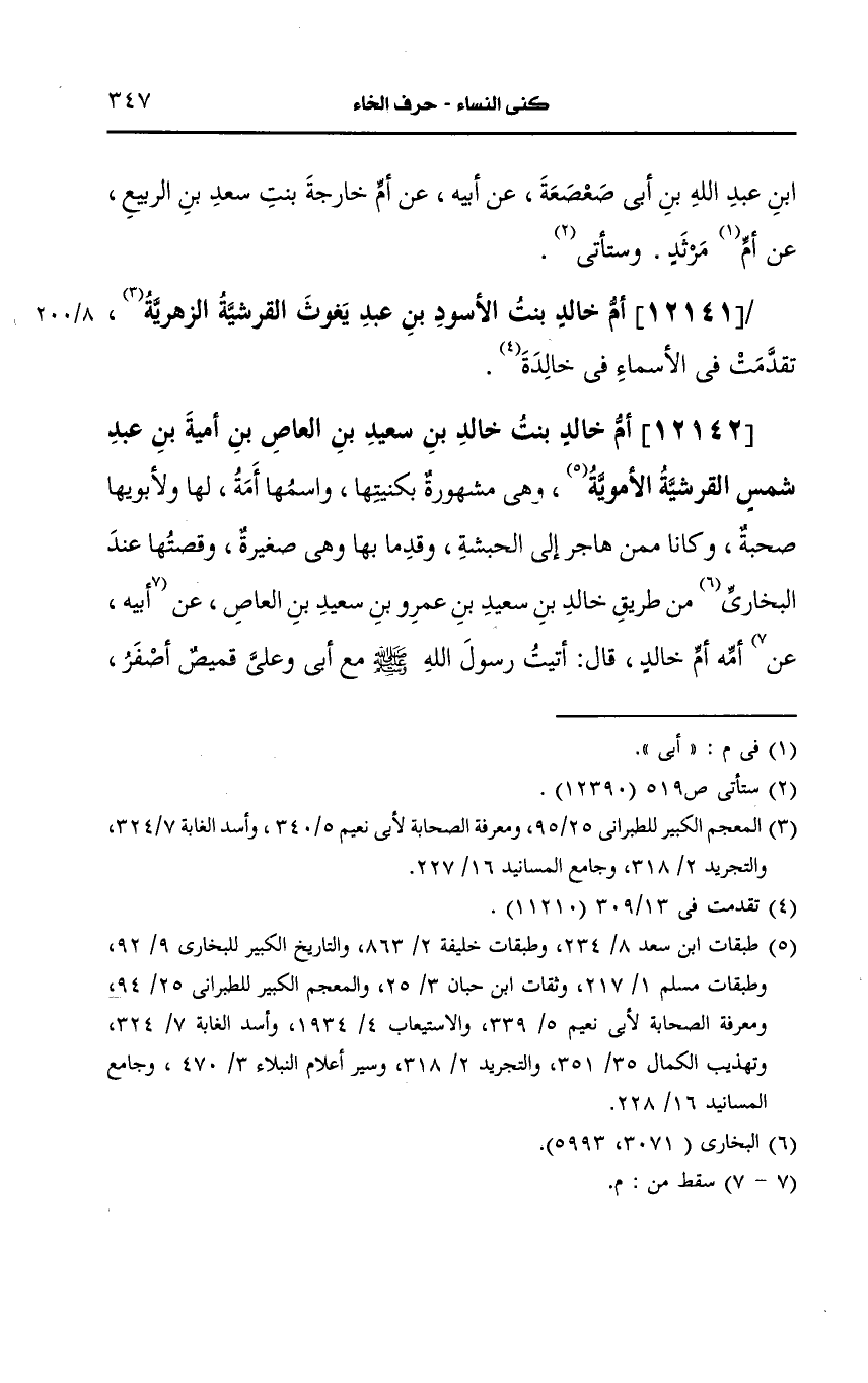 12142- أم خالد بنت خالد بن سعيد بن العاص بن أُمَيَّة بن عبد شمس، القُرشِيّة الأموية.