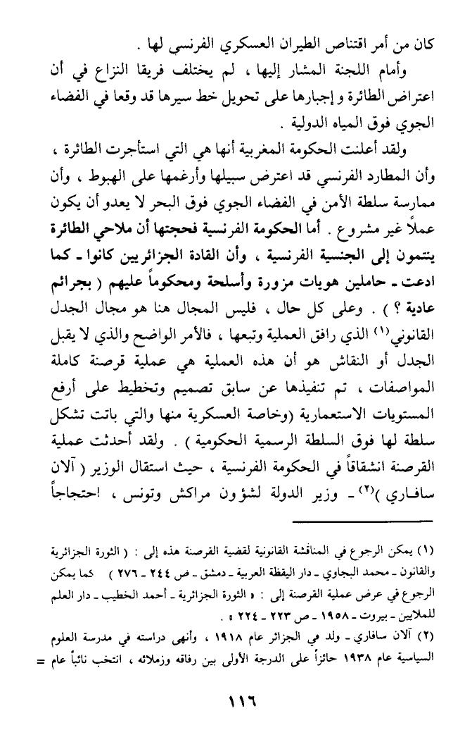 (¬1) يمكن الرجوع في المناقشة القانونية لقضية القرصنة هذه إلى: (الثورة الجزائرية والقانون - محمد البجاوي - دار اليقظة العربية - دمشق - ص 244 - 276) كما يمكن الرجوع في عرض عملية القرصنة إلى: (الثورة الجزائرية - احمد الخطيب - دار العلم للملايين - بيروت - 1958 - ص223 - 224).