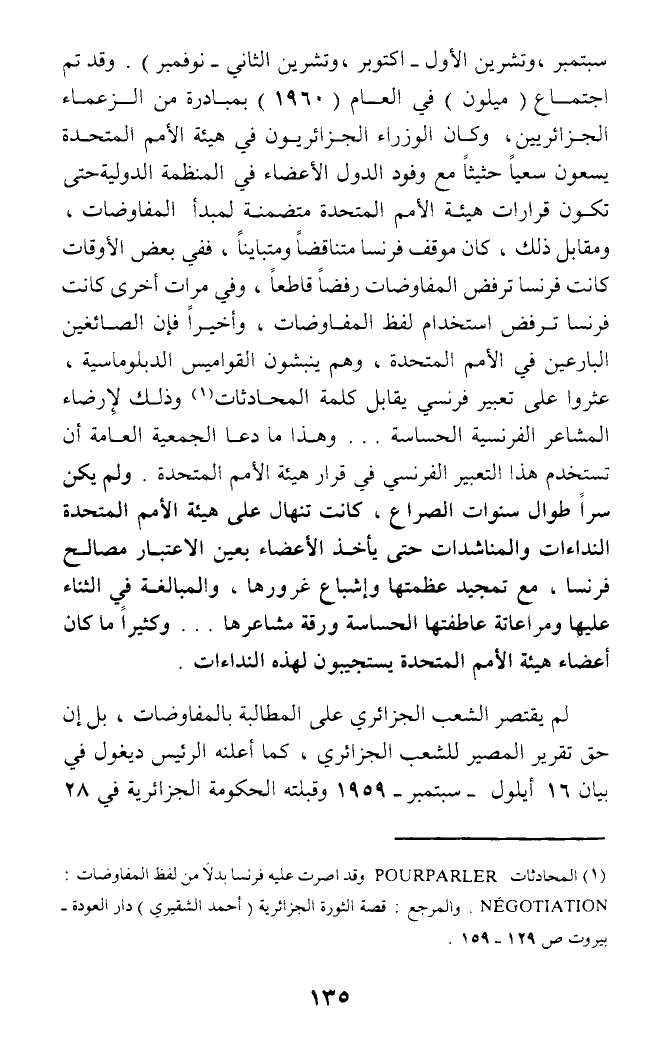 (¬1) المحادثات POURPARLER وقد اصرت عليه فرنسا بدلا من لفظ المفاوضات: