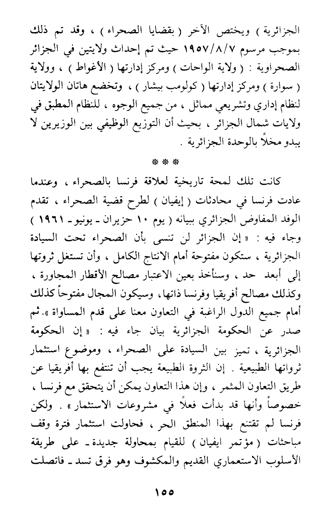 كانت تلك لمحة تاريخية لعلاقة فرنسا بالصحراء، وعندما عادت فرنسا في محادثات (إيفيان) لطرح قضية الصحراء، تقدم