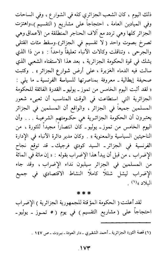 (¬1) قصة الثورة الجزائرية - أحمد الشقيري - دار العودة - بيروت - ص 147.