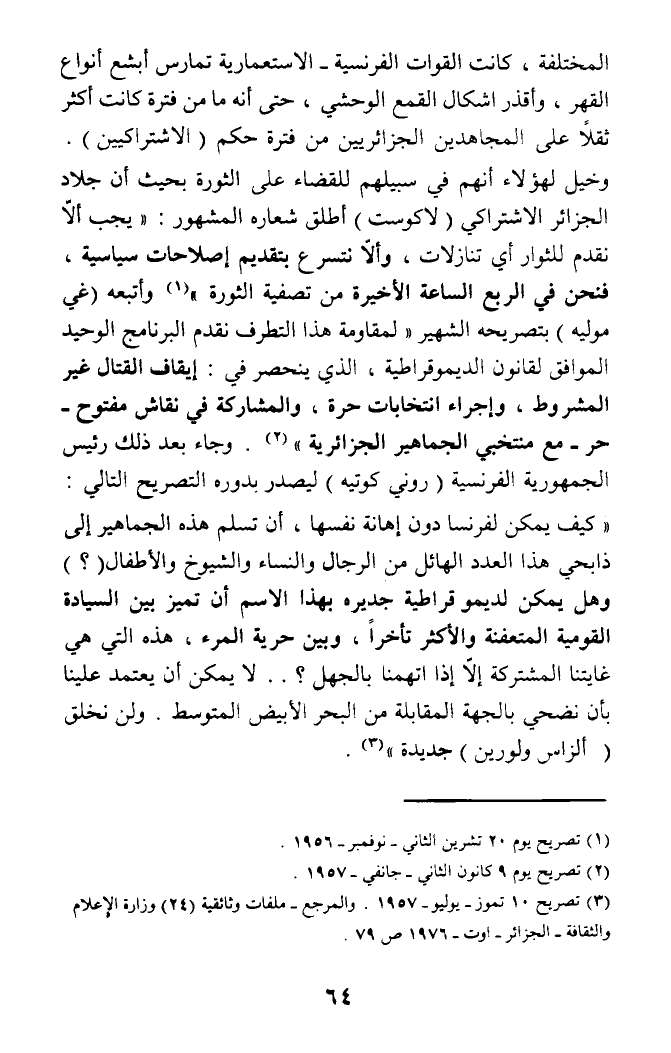 (¬3) تصريح 10 تموز - يوليو - 1957. والمرجع - ملفات وثائقية (24) وزارة الإعلام والثقافة - الجزائر - أوت - 1976 ص 79.