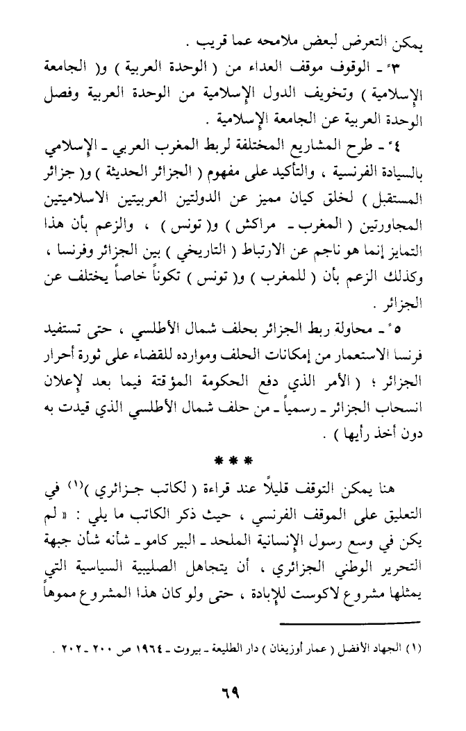 (¬1) الجهاد الأفضل (عمار أوزيغان) دار الطليعة - بيروت - 1964 ص 200 - 202.