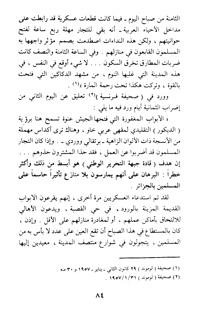 (¬1) صحيفة (لوموند) 29 كانون الثاني - يناير - 1957 و30 منه.