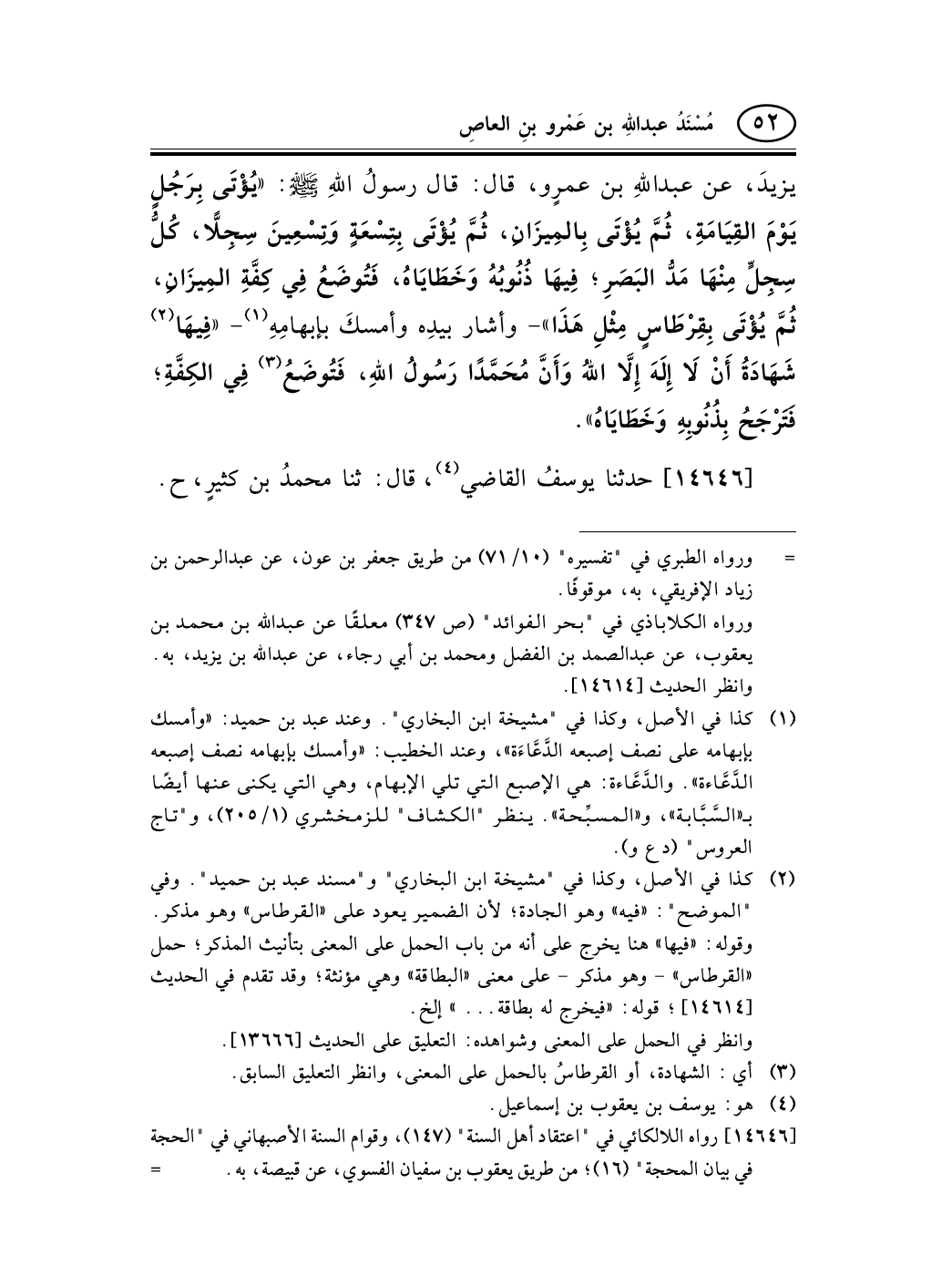 14646 - حدثنا يوسفُ القاضي (¬1) ، قال: ثنا محمدُ بن كثيرٍ، ح. -[53]-