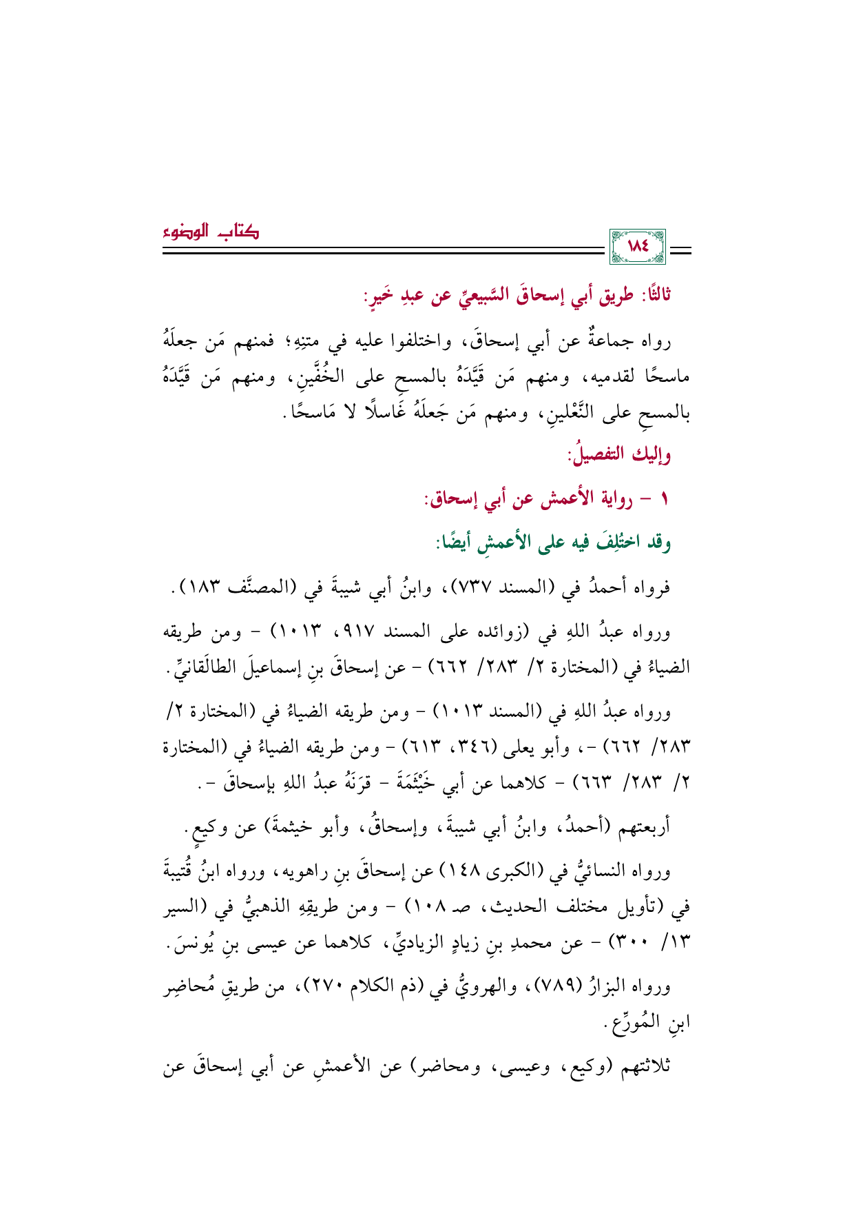 ثالثًا: طريق أبي إسحاقَ السَّبيعيِّ عن عبدِ خَيرٍ: