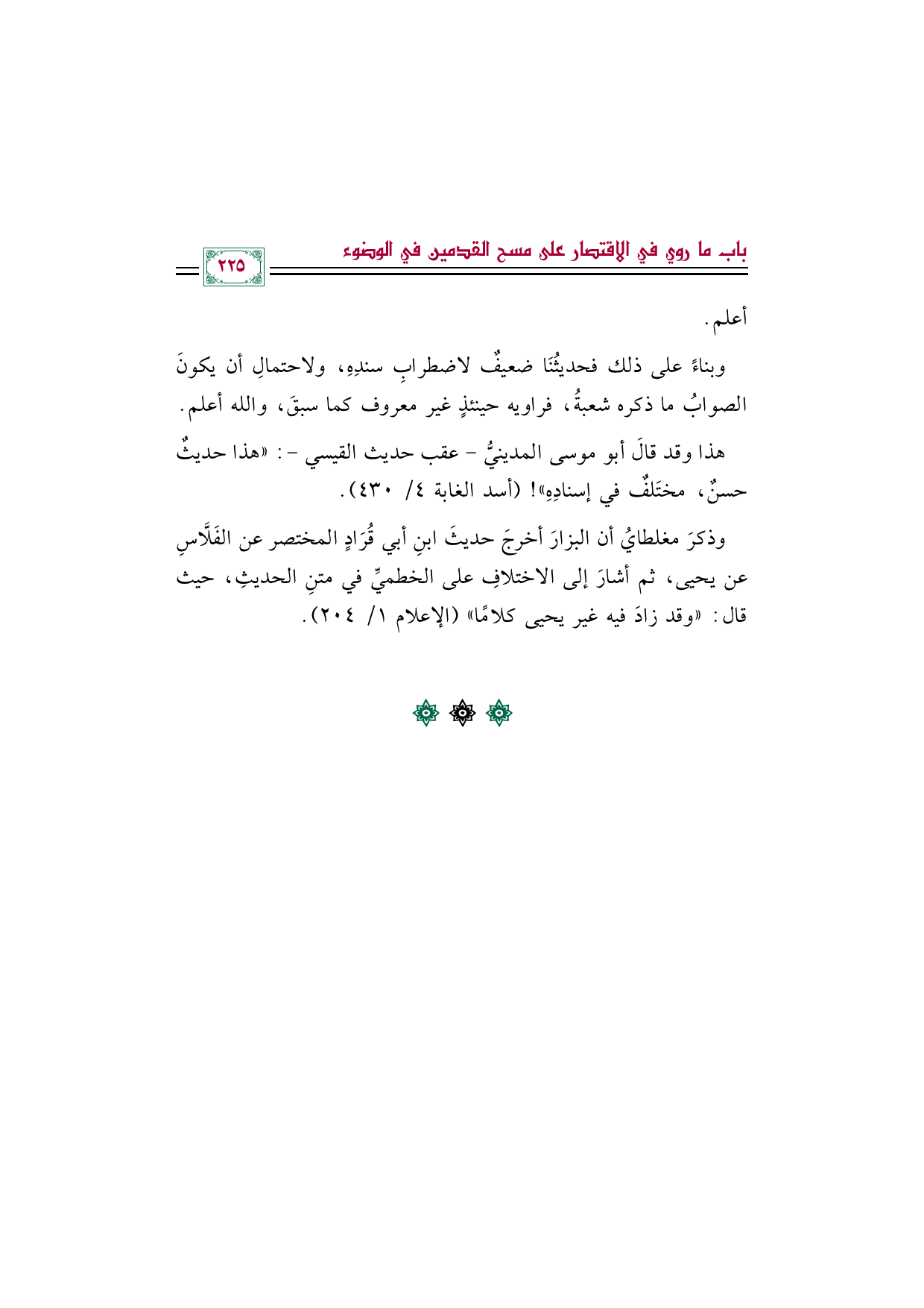 وذكرَ مغلطايُ أن البزارَ أخرجَ حديثَ ابنِ أبي قُرَادٍ المختصر عن الفَلَّاسِ عن يحيى، ثم أشارَ إلى الاختلافِ على الخطميِّ في متنِ الحديثِ، حيث قال: "وقد زادَ فيه غير يحيى كلامًا" (الإعلام ١/ ٢٠٤).