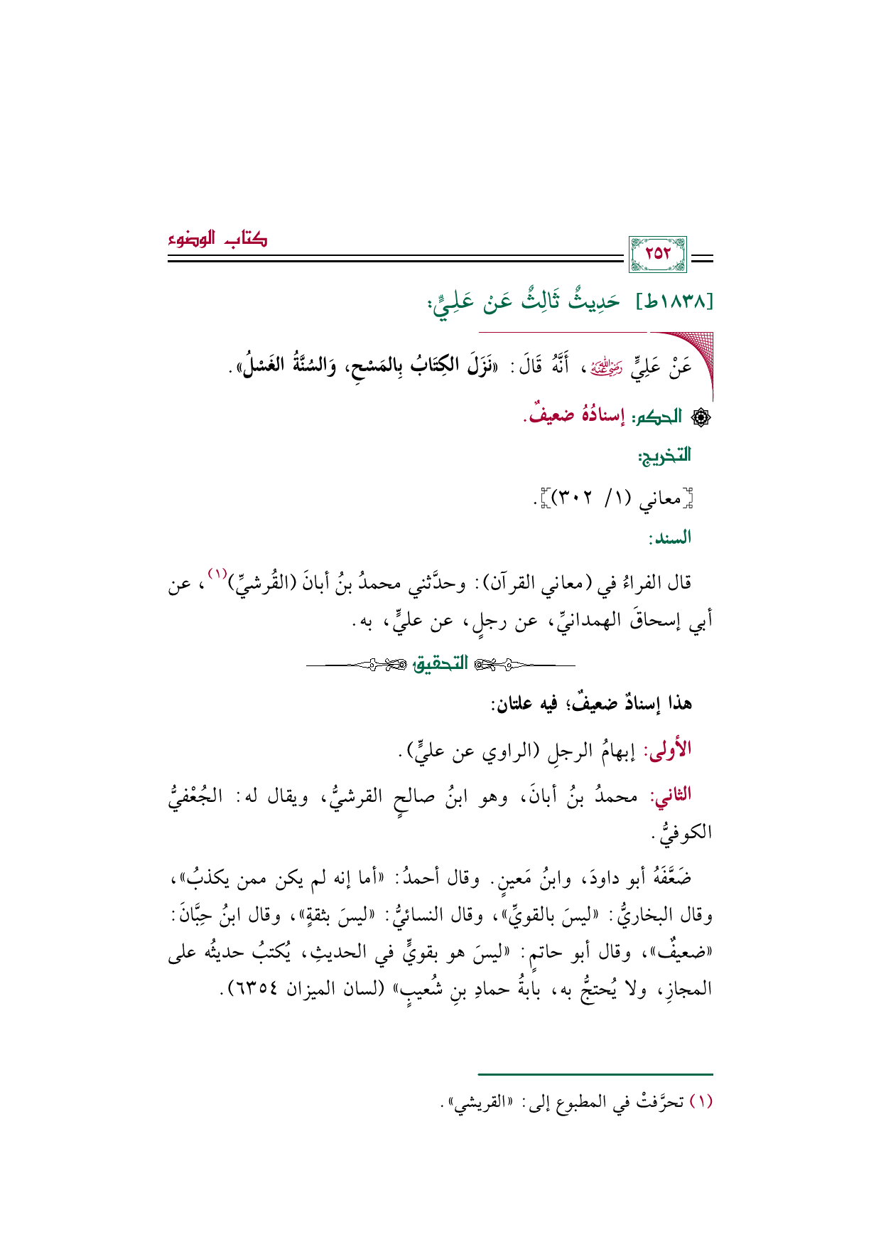 قال الفراءُ في (معاني القرآن): وحدَّثني محمدُ بنُ أبانَ (القُرشيِّ) (¬١)، عن أبي إسحاقَ الهمدانيِّ، عن رجلٍ، عن عليٍّ، به.