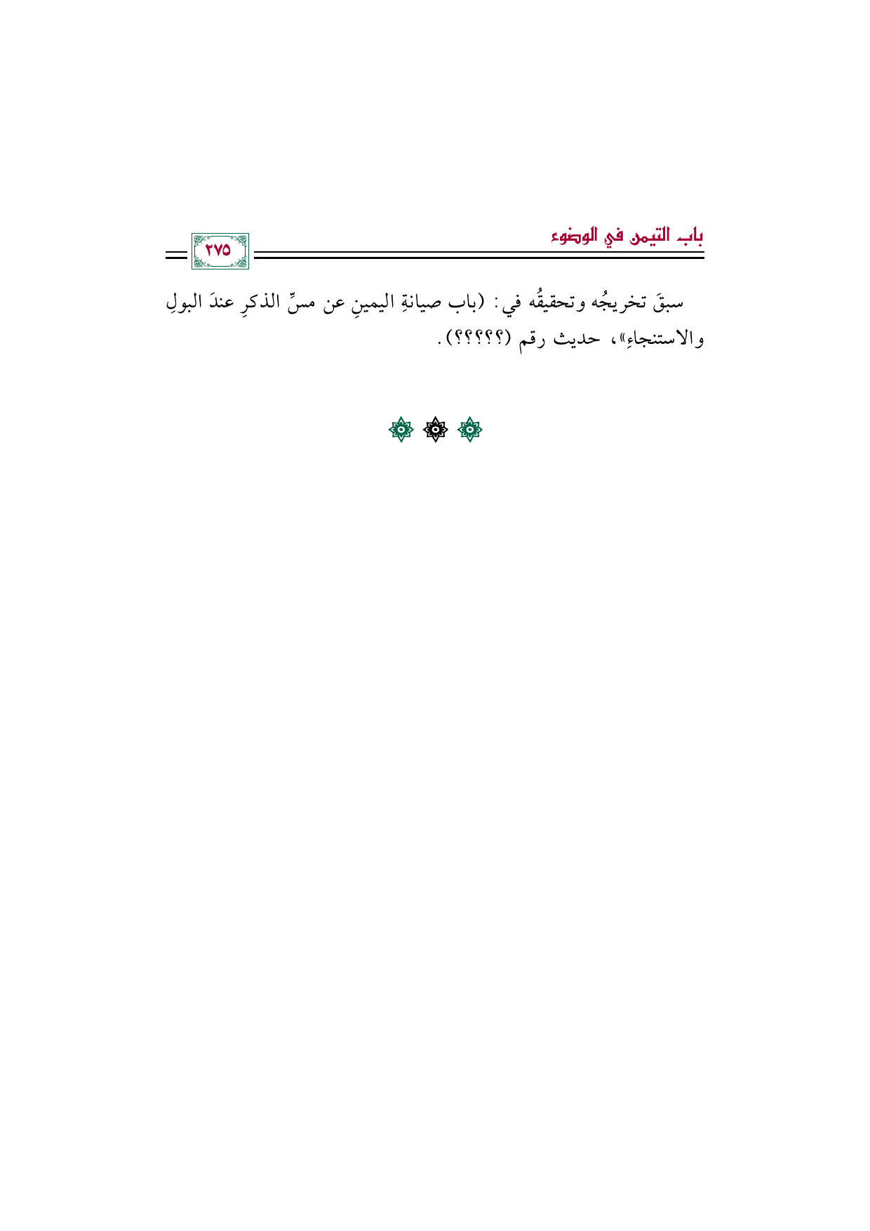 سبقَ تخريجُه وتحقيقُه في: (باب صيانةِ اليمينِ عن مسِّ الذكرِ عندَ البولِ والاستنجاءِ"، حديث رقم (؟ ؟ ؟ ؟ ؟ ).