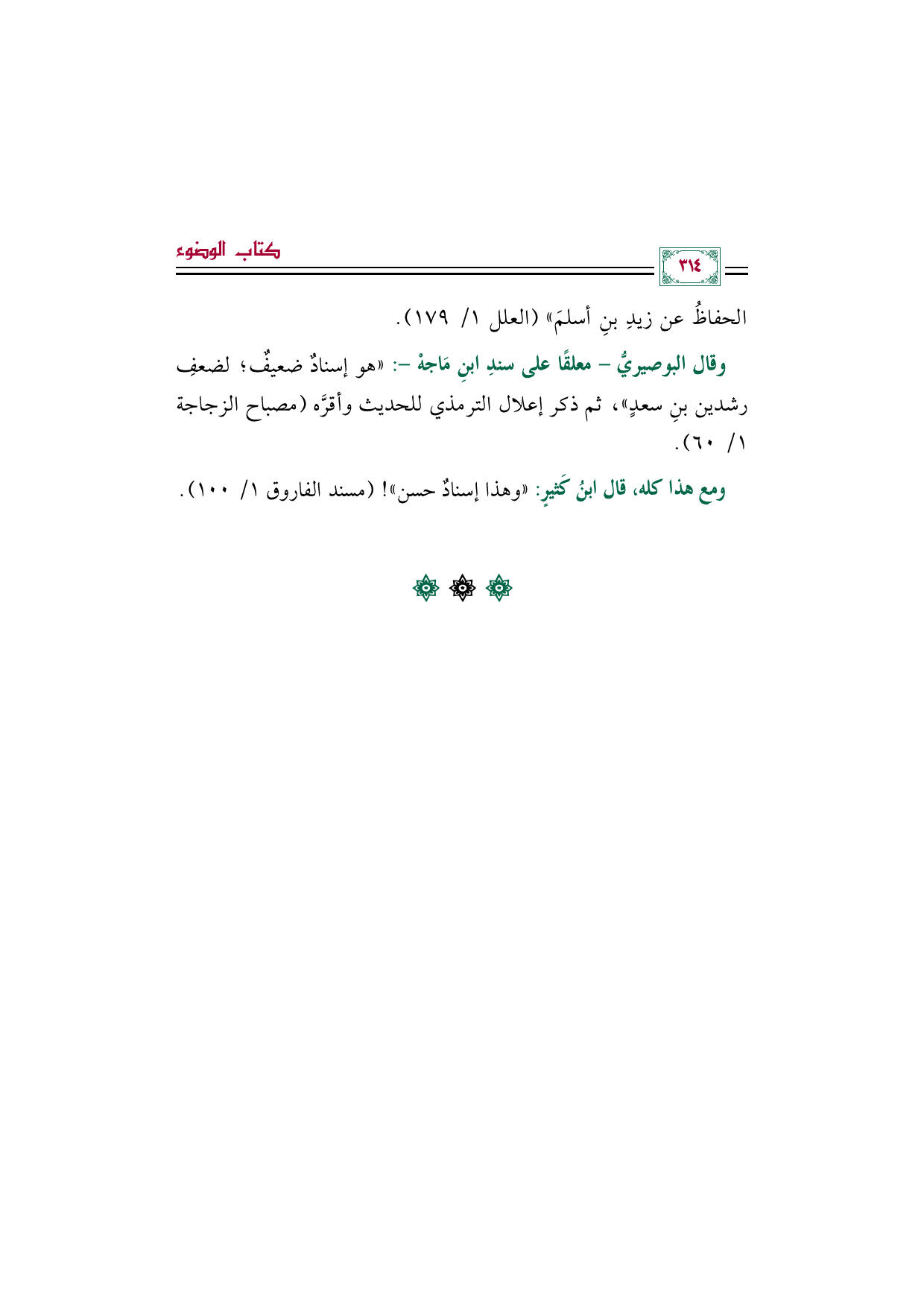 ومع هذا كله، قال ابنُ كَثيرٍ: "وهذا إسنادٌ حسن"! (مسند الفاروق ١/ ١٠٠).