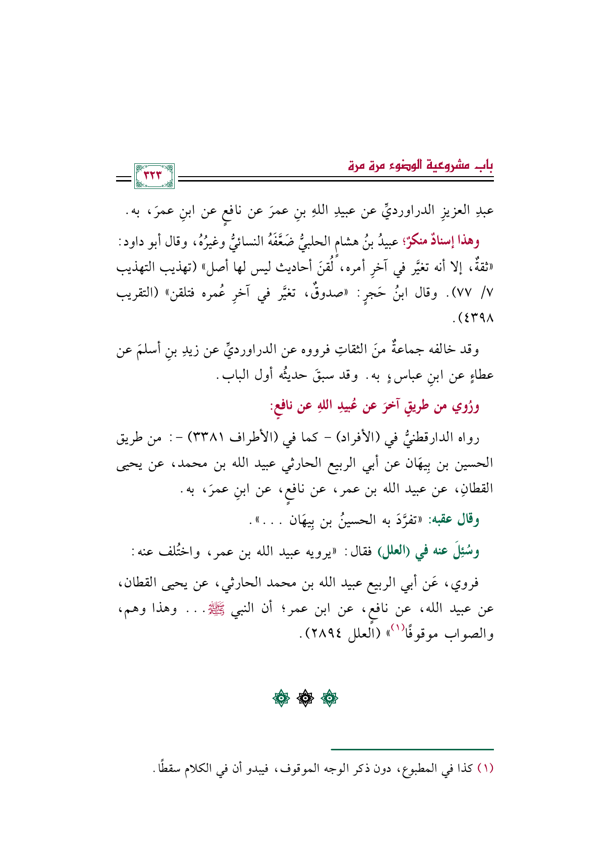 عبدِ العزيزِ الدراورديِّ عن عبيدِ اللهِ بنِ عمرَ عن نافعٍ عن ابنِ عمرَ، به.