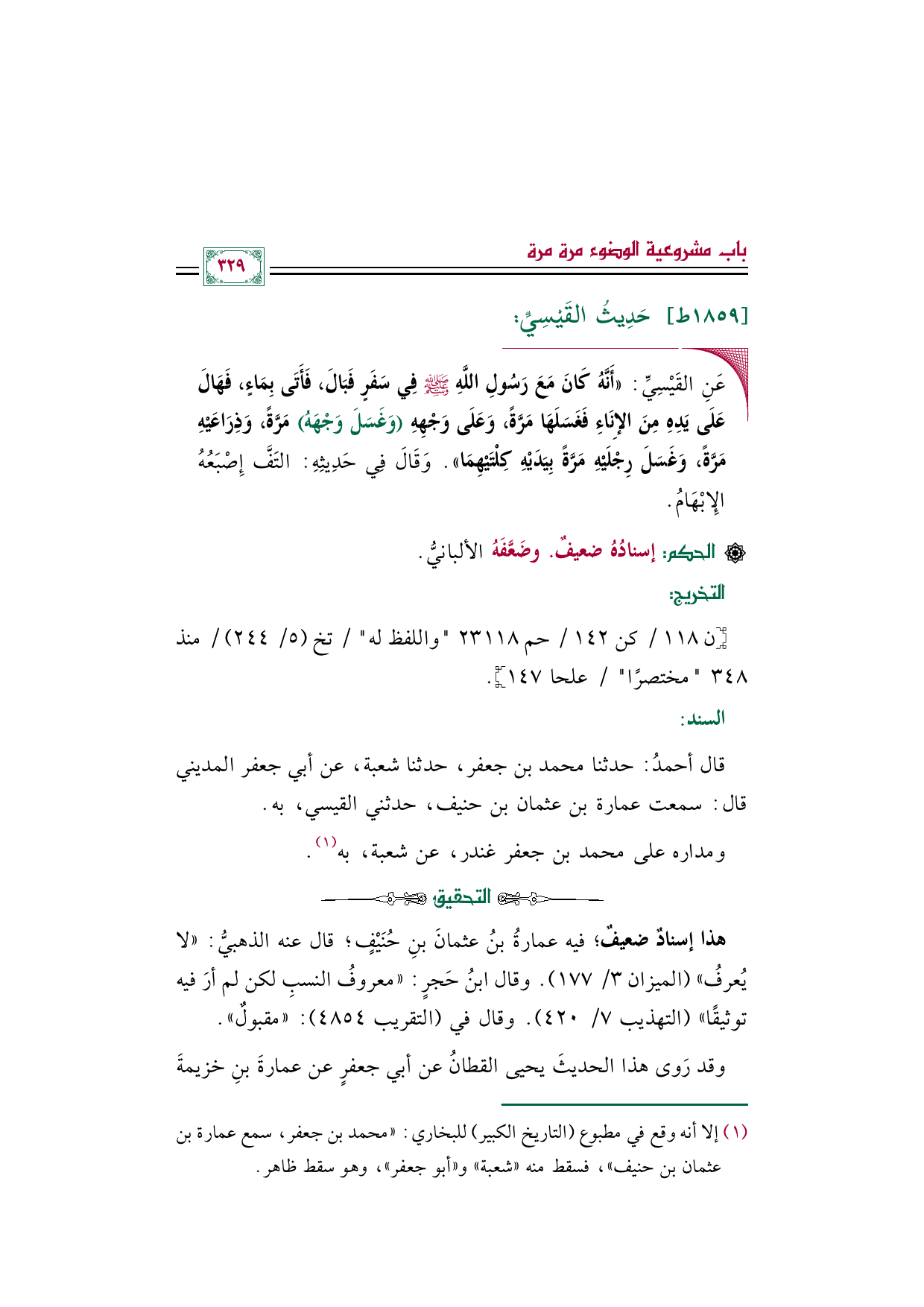 وقد رَوى هذا الحديثَ يحيى القطانُ عن أبي جعفرٍ عن عمارةَ بنِ خزيمةَ