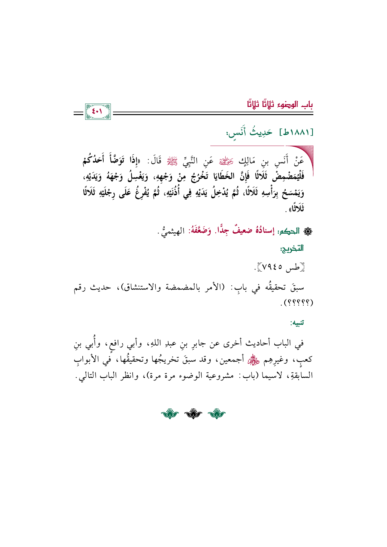 سبقَ تحقيقُه في بابِ: (الأمر بالمضمضة والاستنشاق)، حديث رقم (؟ ؟ ؟ ؟ ؟ ).