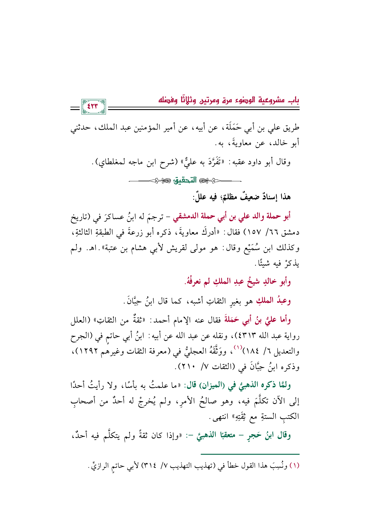 وقال أبو داود عقبه: "تَفَرَّدَ به عليٌّ" (شرح ابن ماجه لمغلطاي).