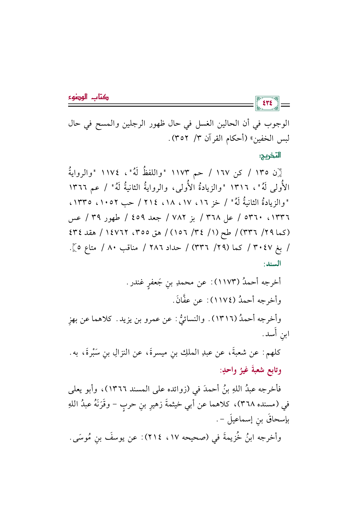 وأخرجه ابنُ خُزيمةَ في (صحيحه ١٧، ٢١٤): عن يوسفَ بنِ مُوسَى.