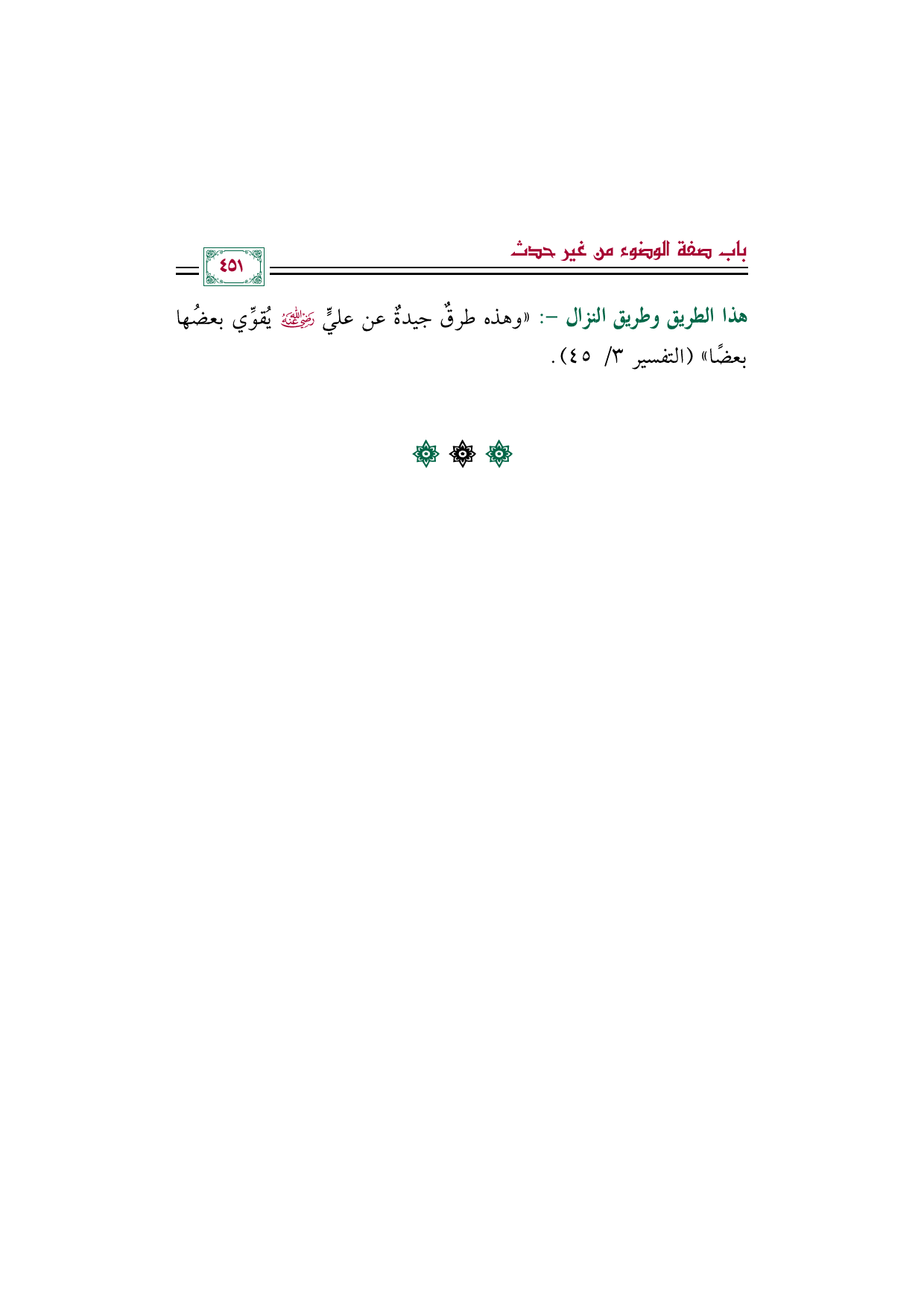 هذا الطريق وطريق النزال-: "وهذه طرقٌ جيدةٌ عن عليٍّ رضي الله عنه يُقوِّي بعضُها بعضًا" (التفسير ٣/ ٤٥).
