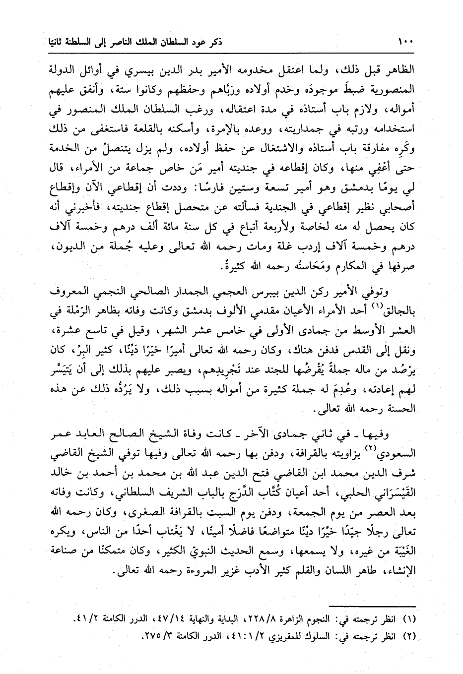 وتوفي الأمير ركن الدين بيبرس العجمي الجمدار الصالحي النجمي المعروف