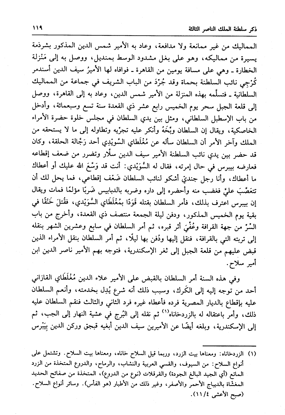 السلطانية - فتسلمه بهذه المنزلة من الأمير شمس الدين ، وعاد به إلى القاهرة ، ووصل