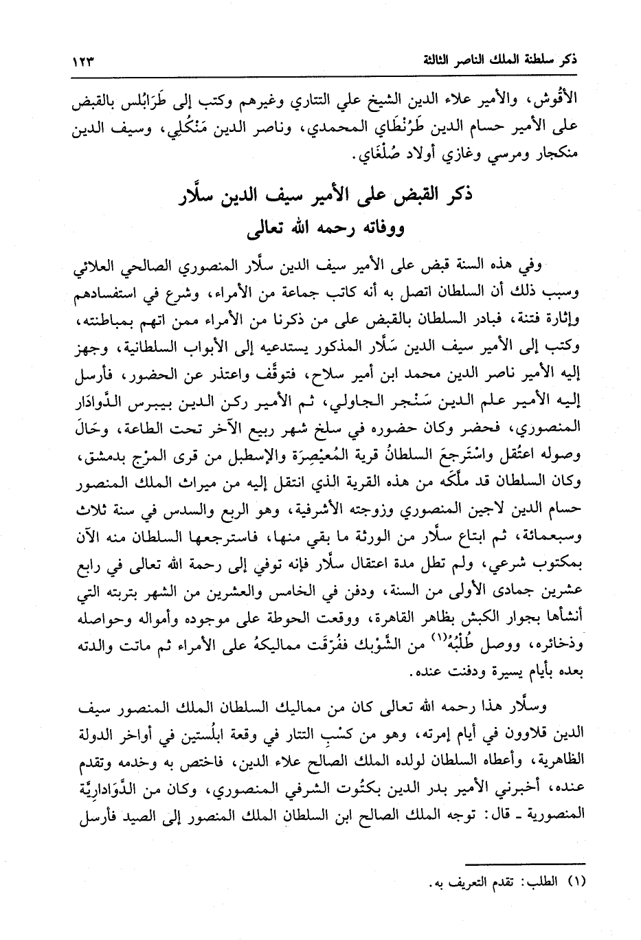 وكتب إلى الأمير سيف الدين سلار المذكور يستدعيه إلى الأبواب السلطانية ، وجهز