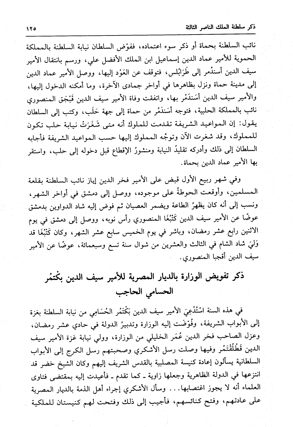 نائب السلطنة بحماة أو ذكر سوء اعتماده ، ففوض السلطان نيابة السلطنة بالمملكة
