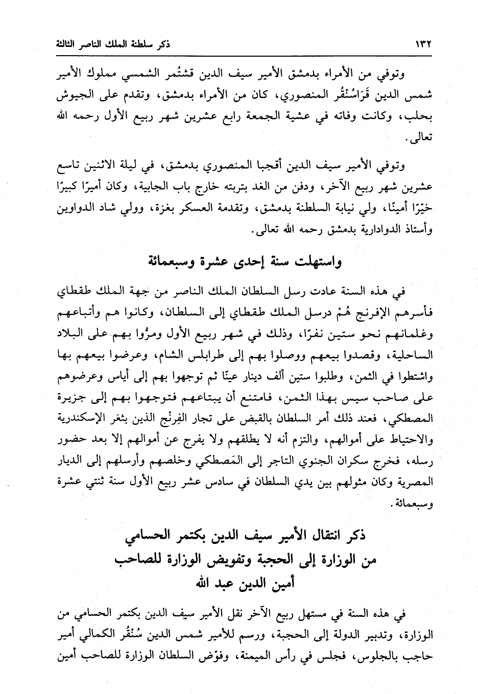 في هذه السنة في مستهل ربيع الآخر نقل الأمير سيف الدين بكتمر الحسامي من