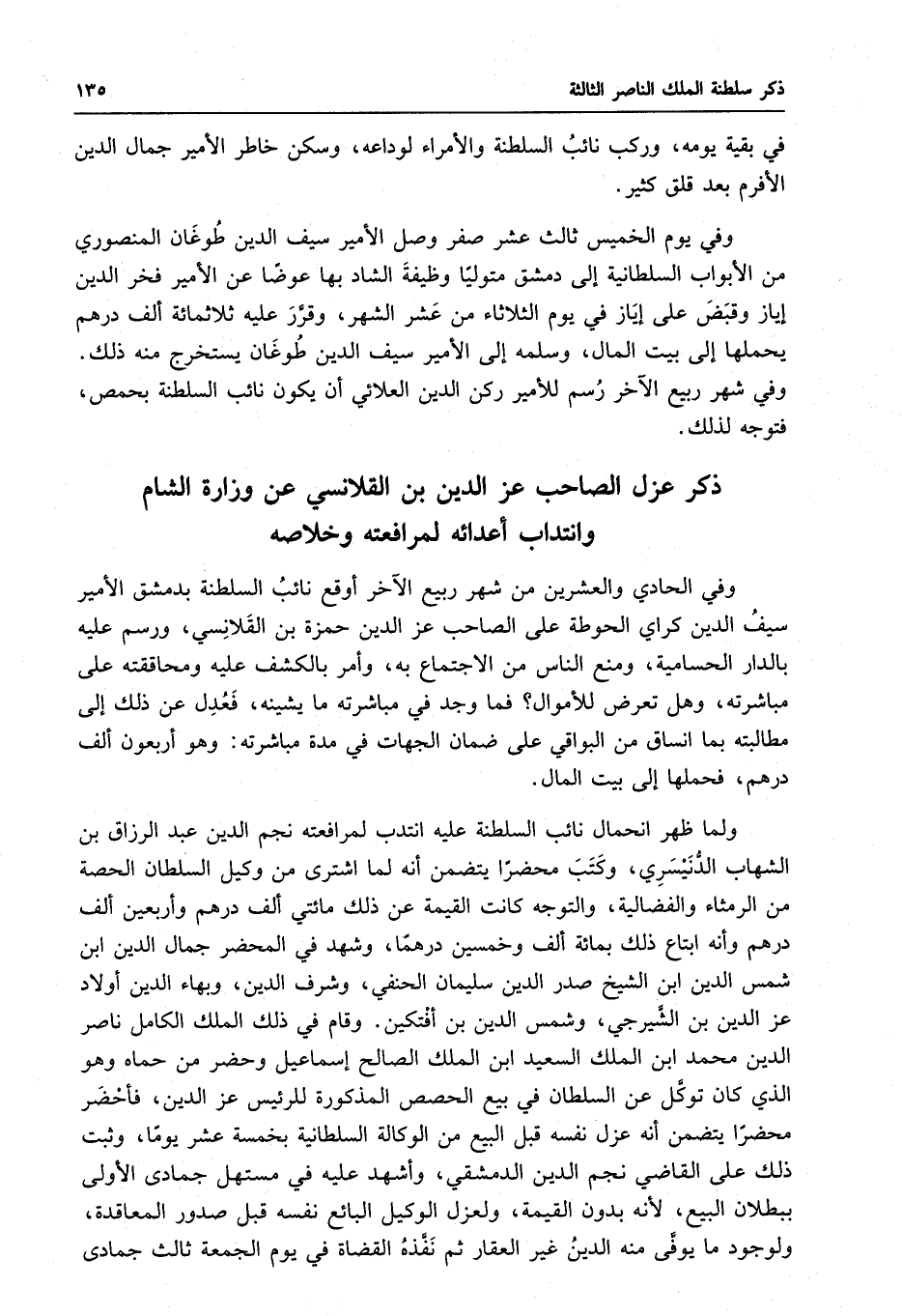 ذلك على القاضي نجم الدين الدمشقي ، وأشهد عليه في مستهل جمادى الأولى