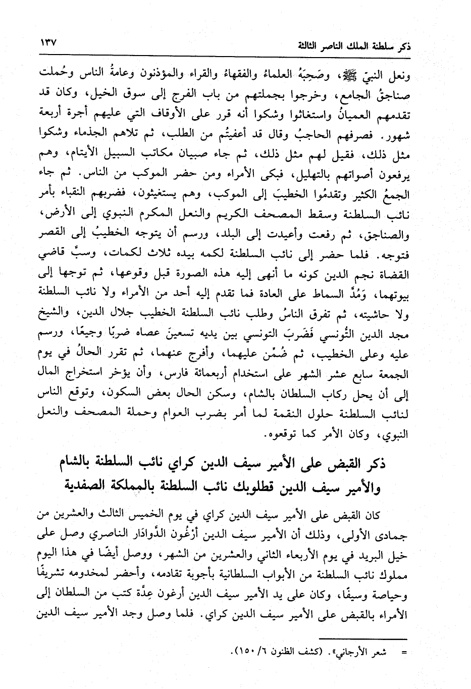 الأمراء بالقبض على الأمير سيف الدين كراي . فلما وصل وجد الأمير سيف الدين