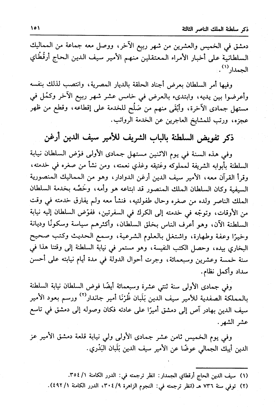ذكر تفويض السلطنة بالباب الشريف للأمير سيف الدين أرغن
