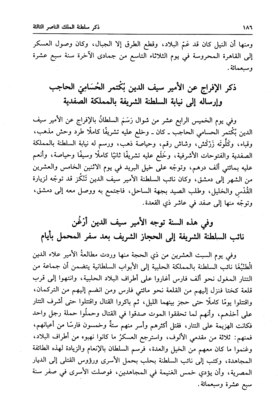 وغنموا ما كان معهم من الخيل والعدة ، فرسم السلطان بالإنعام والزيادة لهذه الطائفة