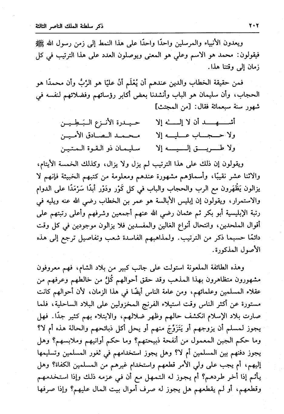 الحجاب ، وأن سليمان هو الباب وأنشدنا بعض أكابر رؤسائهم وفضلائهم لنفسه في