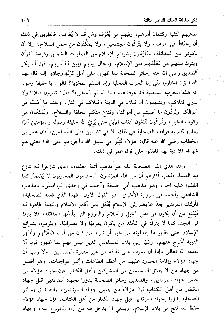 الصديق رضي الله عنه وسائر الصحابة لما ظهروا على أهل الردة وجاؤوا إليه قال لهم