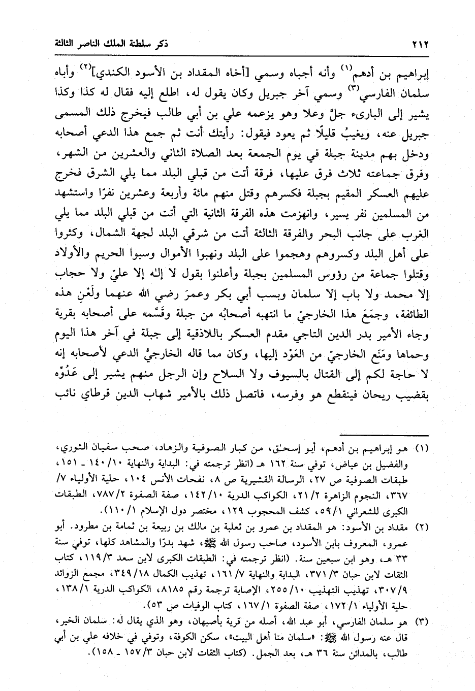 إبراهيم بن أدهم وأنه أجباه وسمي [ أخاه المقداد بن الأسود الكندي ] وأباه