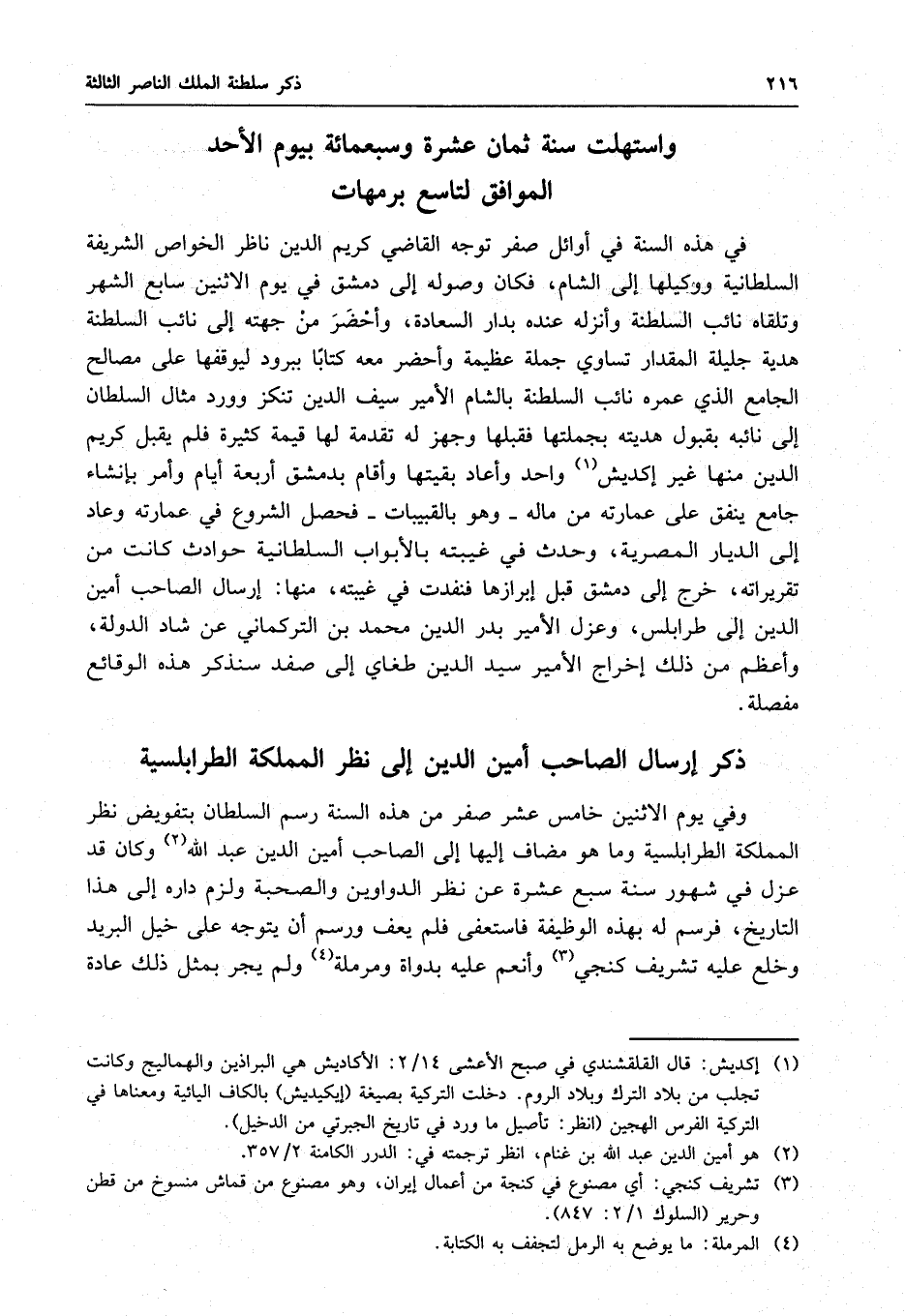 ذكر إرسال الصاحب أمين الدين إلى نظر المملكة الطرابلسية