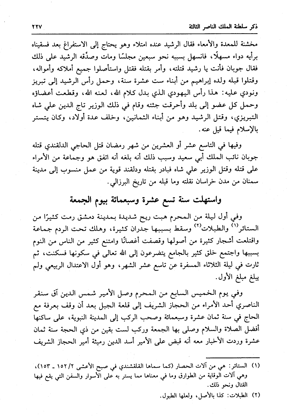 عشرة وردت الأخبار معه أنه قبض على الأمير أسد الدين رميثة أمير الحجاز الشريف