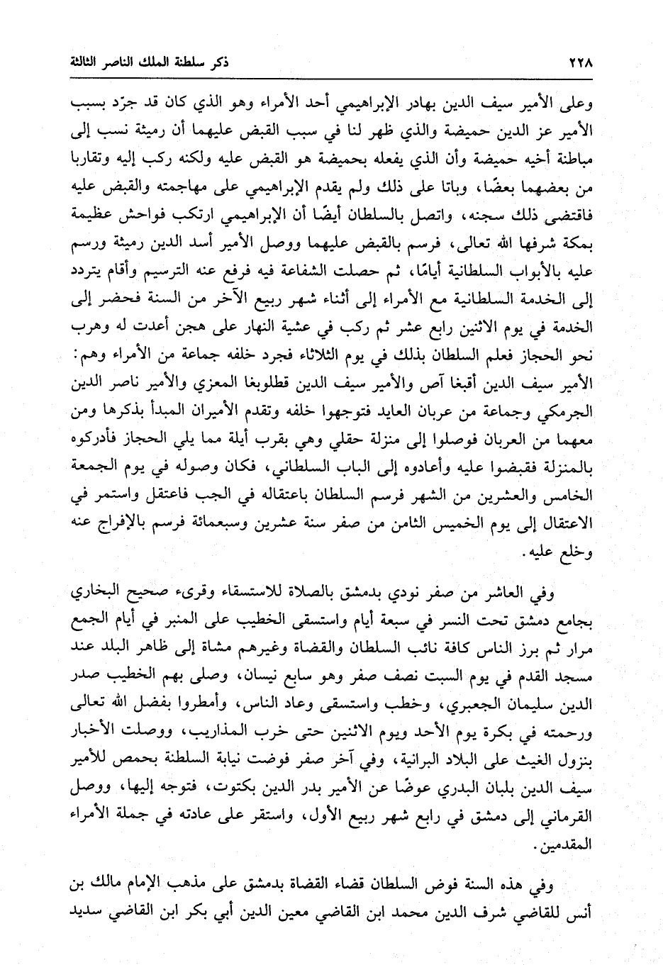وفي هذه السنة فوض السلطان قضاء القضاة بدمشق على مذهب الإمام مالك بن