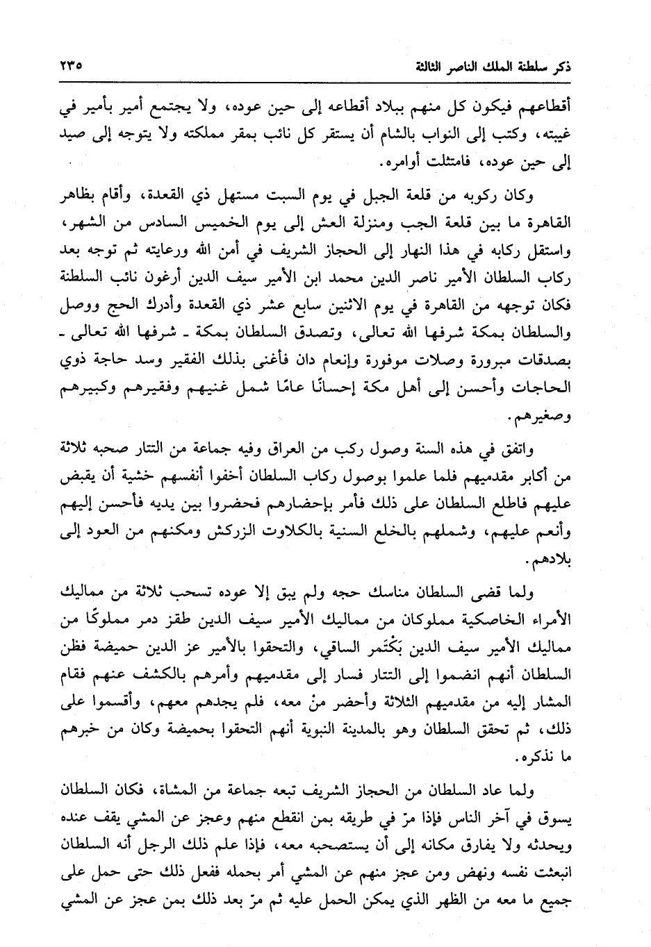 ولما عاد السلطان من الحجاز الشريف تبعه جماعة من المشاة ، فكان السلطان
