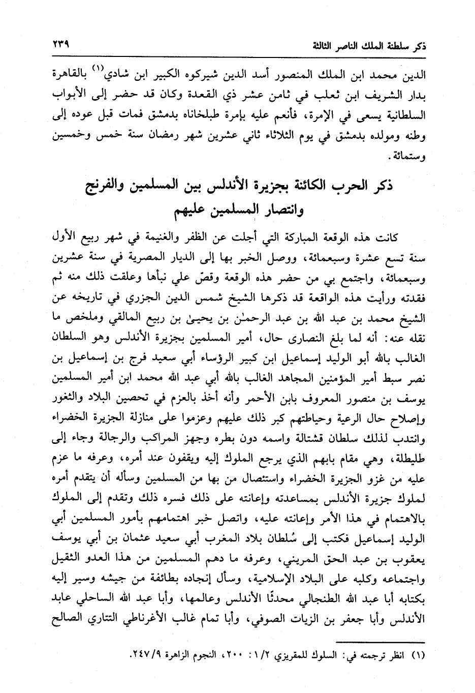 ذكر الحرب الكائنة بجزيرة الأندلس بين المسلمين والفرنج