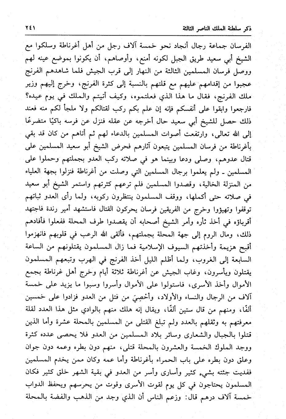 بأغرناطة من فرسان المسلمين يتبعون آثارهم فحرض الشيخ أبو سعيد المسلمين على