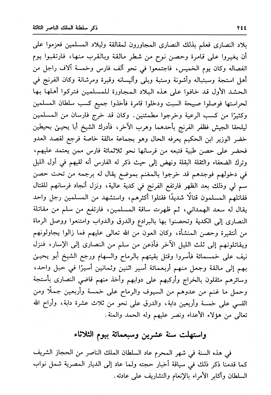 واستهلت سنة عشرين وسبعمائة بيوم الثلاثاء
