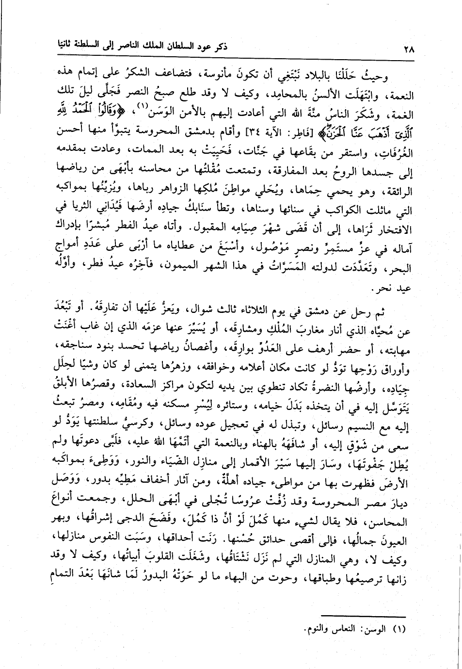 النعمة ، وابتهلت الألسن بالمحامد ، وكيف لا وقد طلع صبح النصر فجلى ليل تلك